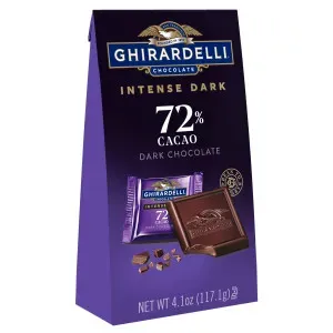 Experience the intense pleasure of Ghiradelli's Intense Dark 72% Cacao Dark Chocolate Squares. Enjoy the subtle flavors of mocha, ripe blackberry and succulent cherry in every bite. Perfect for an after dinner treat, party food, or gift, these individually wrapped chocolate squares come in a case of 6 bags.